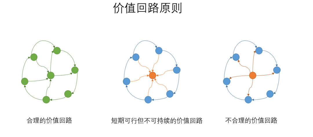 拿到这些 BBB 能干嘛用呢?比分配规则更重要的是需求侧设计,也就是为发行出去的通证提供应用场景。尤其是大量发行通证的“官方”,必须提供产品和服务来“回笼”通证。原则上来说,在系统当中每一个角色,其通证都应该是有出有入。而在整个系统来看,所有的通证流转要形成回路,不能出现“断头路”,更不能出现只出不入的“奇点”。在我的理论体系里,把这个要求称为“价值回路原则”。