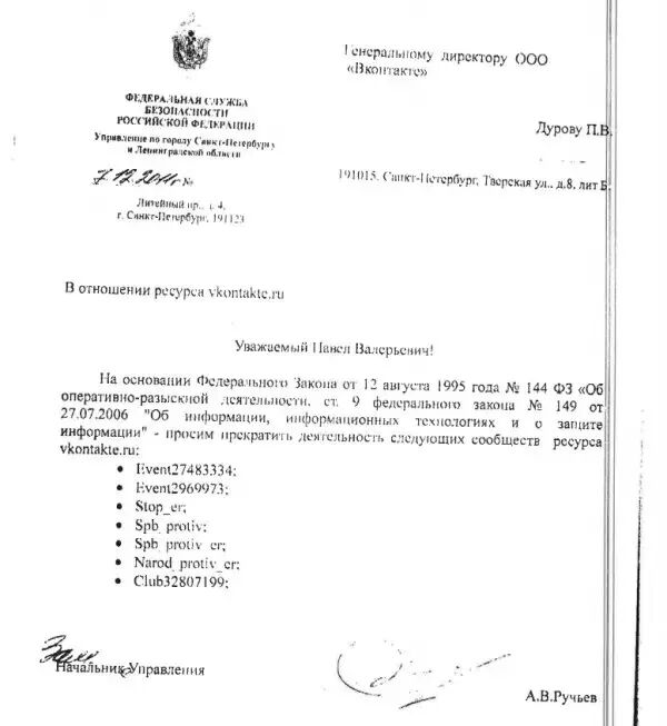 被帕维尔·杜罗夫挂在网上的安全部门的文件