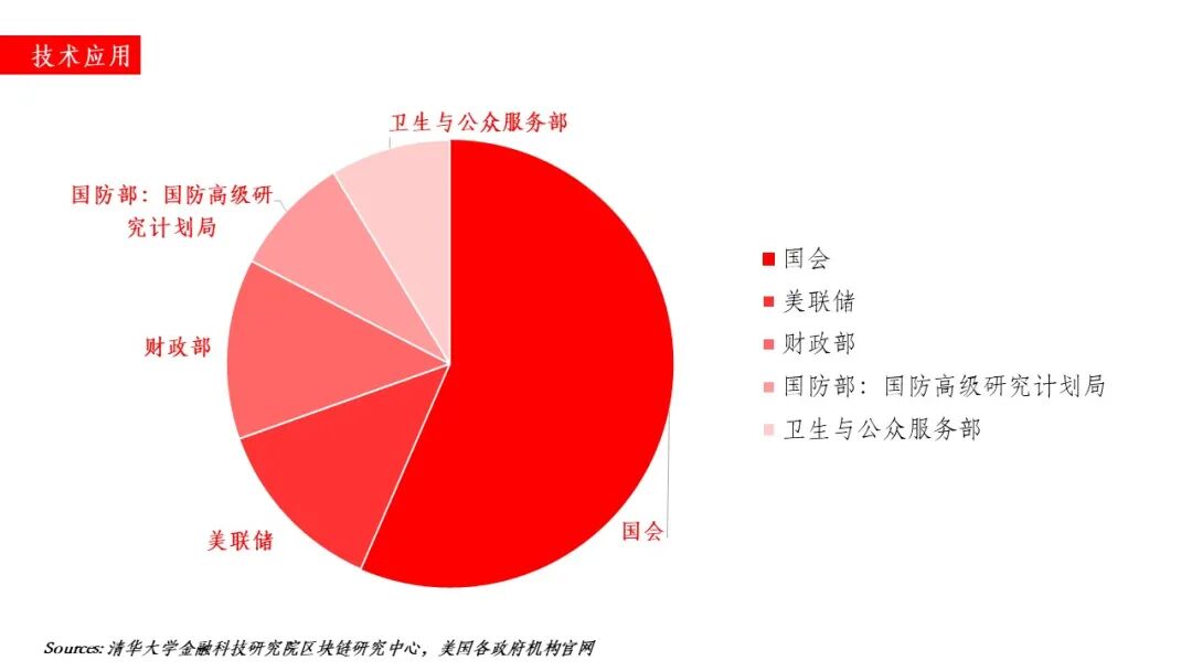 关注区块链技术应用的政府机构有国会、美联储、财政部、国防部、卫生与公众服务部。