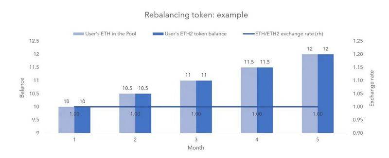 - ETH2上累积的抵押奖励和惩罚反映在代币余额的变化中(因此称为“再平衡”),从而在阶段1.5中,每个抵押ETH代币应以1:1的比例在池中兑换ETH.
