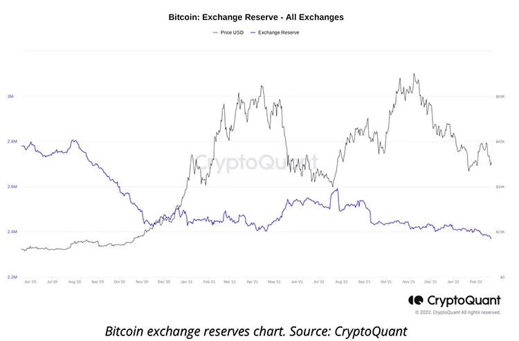 截至2月22日,由CryptoQuant监测的21个主要交易平台的余额为237万BTC。