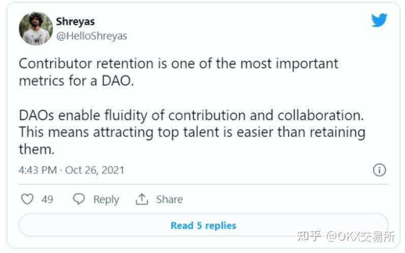 流动贡献与DAO合作。这意味着吸引顶尖人才比留住他们更容易。