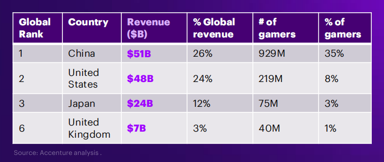 所以这27亿的玩家都是哪些人组成的?为了更好地理解他们的看法、需求和动机,埃森哲收集了来自中国、日本、美国、英国的4000名玩家的数据(每人每周平均玩游戏的时间不小于4小时),这4个市场代表着全球47%的玩家和64%的直接游戏内消费。