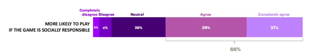 有66%的玩家都更倾向于选择有社交反馈的游戏,只有9%的玩家站在了不同意一边。