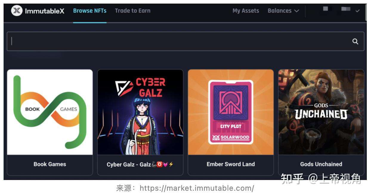 官方总共推介了6个游戏项目,其中只有一个卡牌策略游戏Gods Unchained已经开放给所有玩家,而这也是Immutable公司最早进入行业时所做的项目,后来Immutable正是为了支撑Gods Unchained发展才转而做NFT基础设施。其他游戏虽然都在内部测试中,但大多已发售资产,因此6个游戏中的5个游戏都跻身平台交易额的前15之列。