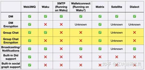 同时,Web3MQ 还兼容广泛的社交身份和社交图协议,使用通信协议作为释放每个社交关系潜力的桥梁,还引入了现有的 Web3 生态,包括 web3 存储(例如 IPFS)和计算(例如 Internet 计算机)作为消息传递生态的补充,并且用户可以通过自定义配置实现更高级别的隐私保护和其他个性化功能。相较于目前的web3通信协议而言,Web3MQ是思路和功能都相对成熟完善的协议项目。