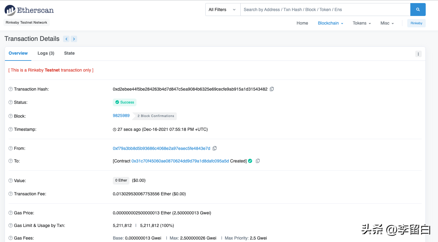 QuickNode 本质上帮助我们广播我们的合约创建交易,以便它可以尽快被测试网上的矿工拾取。一旦交易被挖掘出来,它就会作为合法交易被广播到区块链上。从那里,每个人都会更新他们的区块链副本。