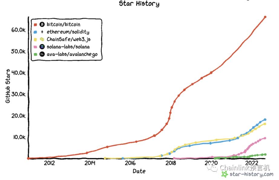 比特币、Solidity、Web3.js、Solana 和 AvalancheGo 的 GitHub 代码库星标数