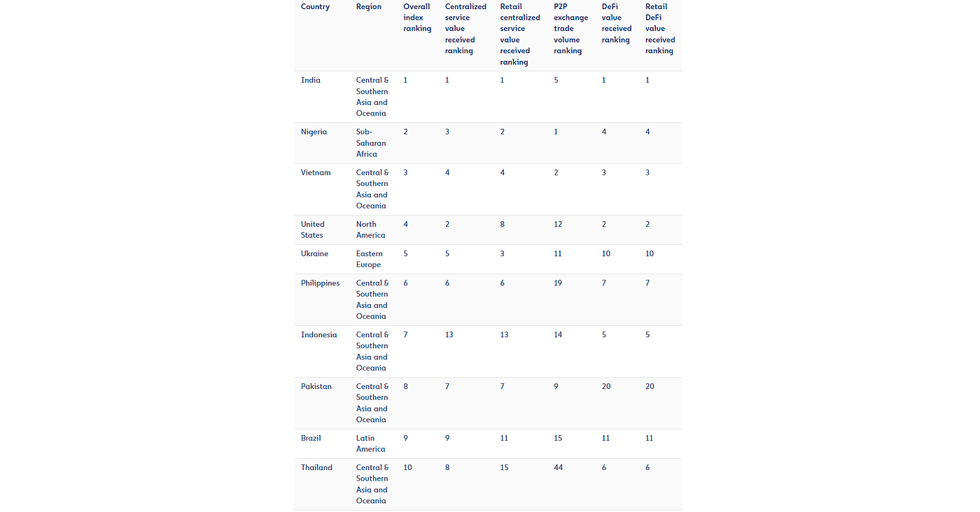 泰国在平民采用方面表现良好, 在Chainaanalysis 的“2023 年全球加密货币采用指数”中名列第10,根据《2022年全球数字概览报告》,泰国是全球在互联网用户中拥有加密货币比例最高的国家之一,