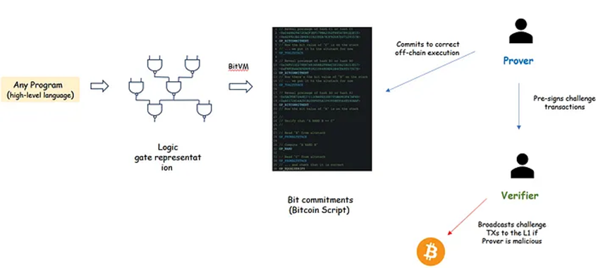 扩展比特币L1功能的一个独特努力是BitVM。这个概念建立在Taproot升级到比特币的基础上。BitVM的概念是通过链下执行程序来扩展比特币的功能,并保证执行可以通过欺诈证明在链上受到挑战。虽然BitVM似乎可用于在链下实现任意逻辑,但在实践中,在L1上执行欺诈证明的成本随着链下程序的规模而迅速增长。这个问题限制了BitVM在特定问题上的适用性,比如最小化信任的BTC桥。许多即将推出的比特币L2都利用BitVM进行桥接实现。
