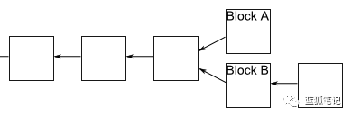 例如,假设我们有一个分叉,其中一些矿工首先接收到A块,一些矿工首先收到B块。那些收到第一个区块A的矿工将继续沿着这支分叉链条挖矿,而其他的矿工则会沿着B分叉链条继续开采。假设在B分叉上工作的矿工成功地开采了一个区块: